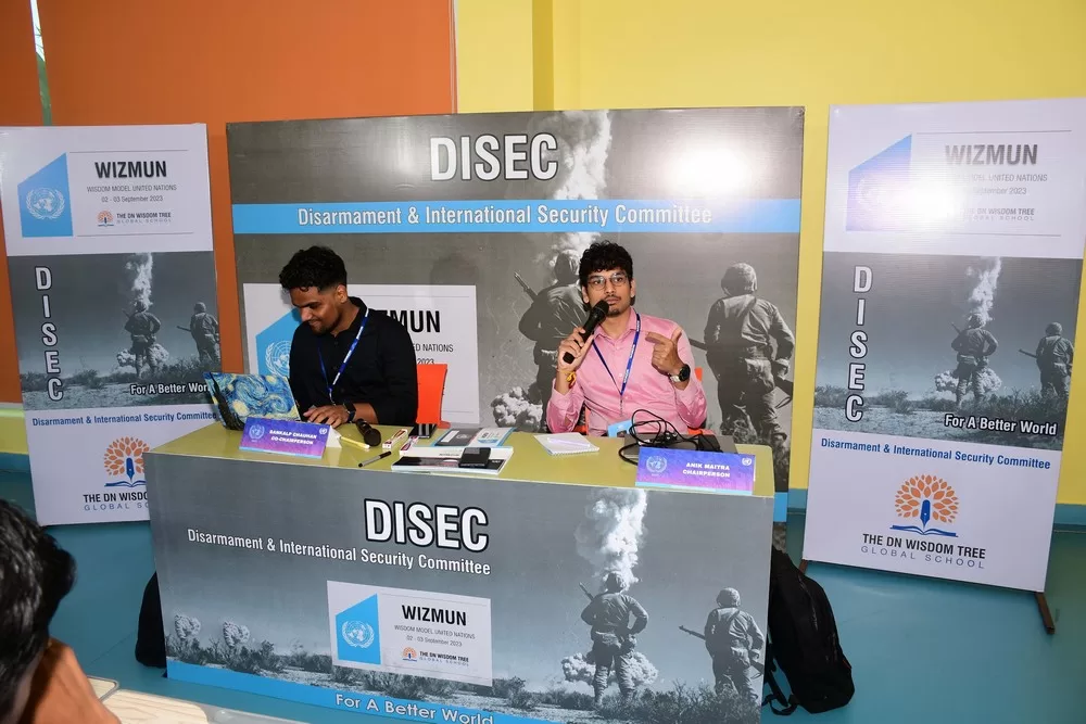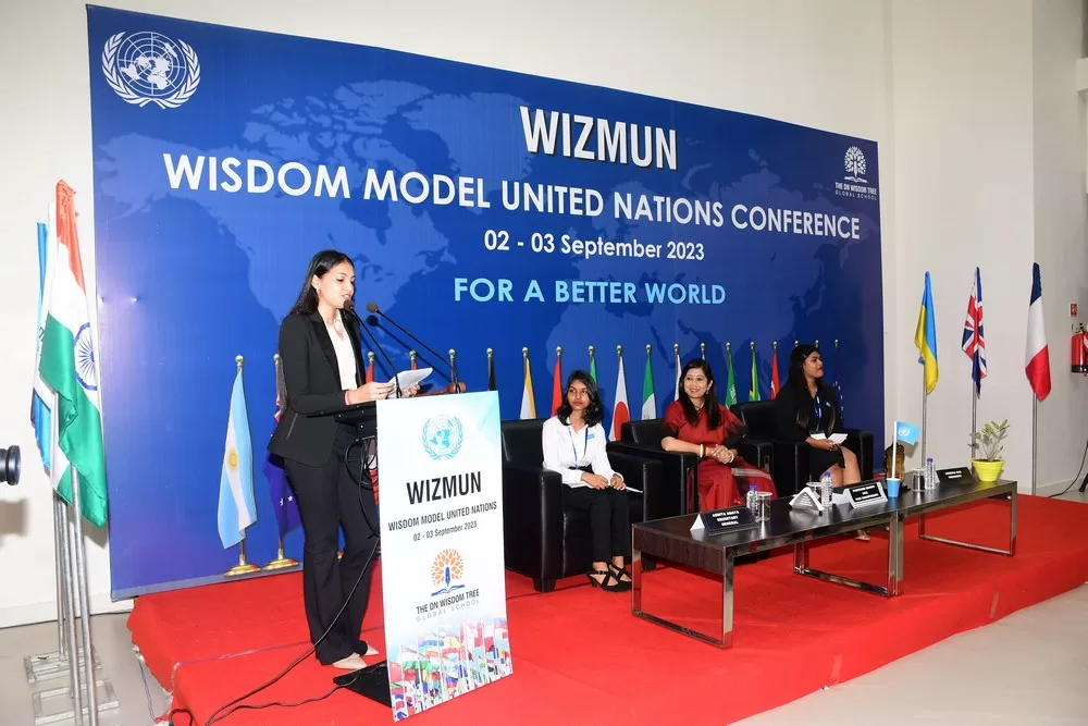 The first edition of the Wisdom Model United Nations Conference got off to an exciting start this morning, at The DN Wisdom Tree Global School. The Opening Ceremony was graced by Ms. Panchami Manoo Ukil, School Leader and Vice Chairperson of The DN Wisdom Tree Global School, along with Ms. Snigdha Das, President, WIZMUN 2023, and Miss Asmita Amaya, Secretary General, WIZMUN 2023.